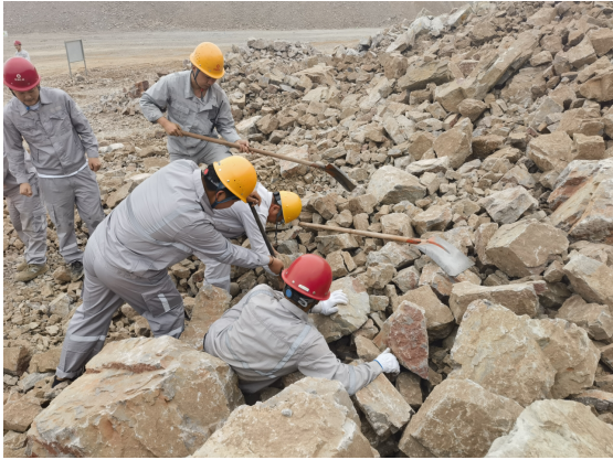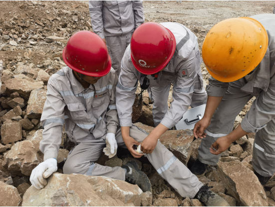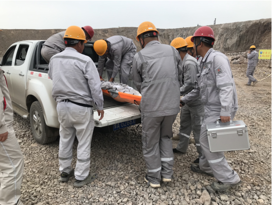 上午10時整,演練正式拉開序幕。假設(shè)情況是該露天礦山某區(qū)域發(fā)生了邊坡坍塌,造成一名作業(yè)人員腿部受傷被困。接到報告后,項目副經(jīng)理楊宇立即啟動應(yīng)急預(yù)案,迅速組織了由醫(yī)療救護(hù)組、應(yīng)急搶險組、警戒保衛(wèi)組、物資保障組等部門人員組成的應(yīng)急救援隊伍,攜帶救援裝備,迅速趕赴事故現(xiàn)場。同時,通訊保障組也迅速建立起臨時通訊網(wǎng)絡(luò),確?,F(xiàn)場信息暢通無阻。