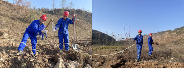 春風(fēng)催新綠,植樹正當(dāng)時。上午9時,植樹現(xiàn)場全員帶上工具直奔目的地,大家分工協(xié)作,揮鍬挖坑、扶苗栽苗、澆水培土,個個干勁十足,各個環(huán)節(jié)銜接有序,配合默契,勞動現(xiàn)場處處是忙碌的身影,一派春意盎然、生機(jī)勃勃的景象,真正是勁往一處使、汗往一處流,充分發(fā)揚(yáng)了團(tuán)結(jié)、互助、友愛的精神。